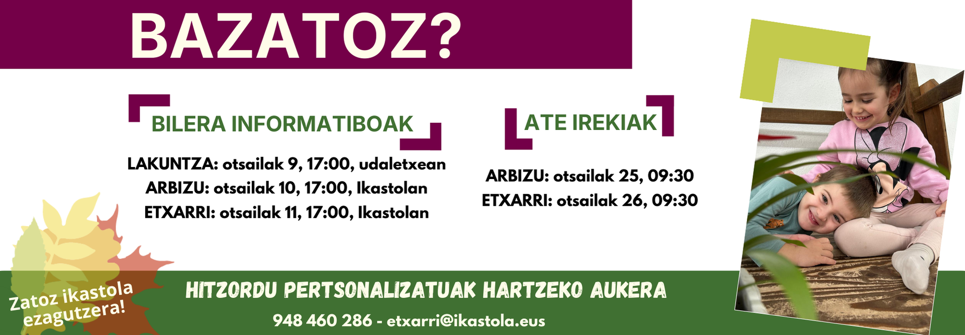 La Ikastola Andra Mari ofrecerá un taller sensorial para todos los niños y niñas nacidas en 2023, el 29 de enero, de 17:00 a 18:00 horas. Los niños y niñas tendrán que venir acompañados de un adulto, y habrá una merienda.